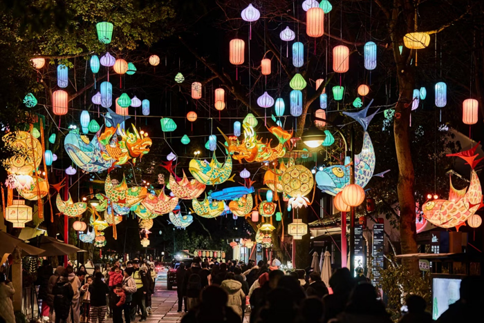 据悉,西溪湿地新春灯会将持续至2月12日(正月十五),其中“夜鱼纷舞”非遗鳌鱼灯巡游在蒋村慢生活街区以及河渚街演出,“游龙贺春”非遗龙灯表演则在邬家湾区域、周家村区域、河渚街区域,火爆社交平台的“花灯绽放”非遗盒子灯表演则可在河渚塔广场观赏。