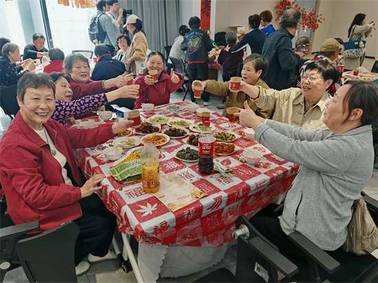 饭桌上,刚在舞台上“同台”的老人们互相夸赞,聊着表演时的趣事,也说着自家的家常。85岁的陈奶奶夹了一块糖醋里脊:“今天又看了好戏,又吃了好菜,这重阳节过得比过年还热闹!”