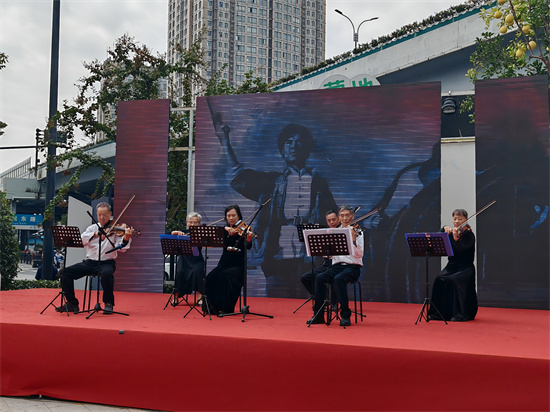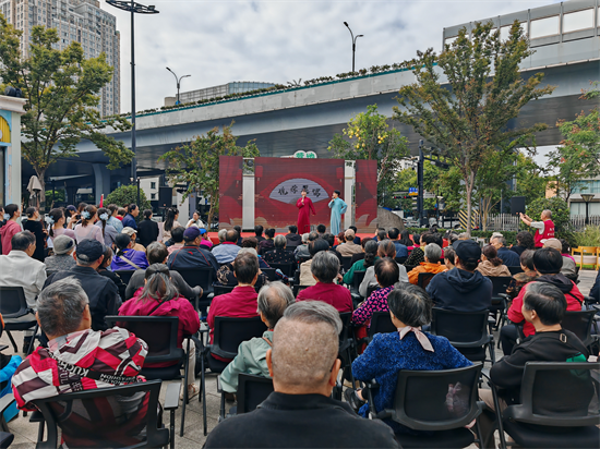 这场盛会的“主角团”全是辖区里的银发老人:他们有的执琴弓奏红色经典,有的亮嗓子唱家国情怀,有的抖包袱说市井趣事,用自编自演的西乐、相声、舞蹈,把重阳节过成了充满幸福感的“才艺派对”。
