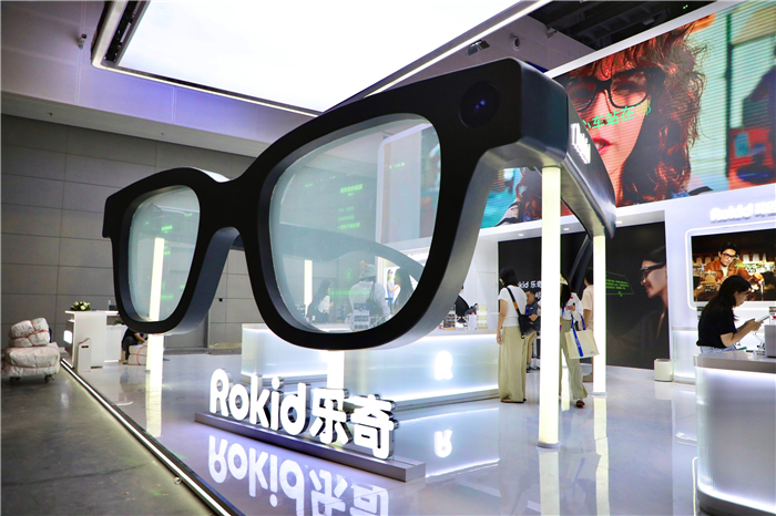 在人工智能展馆,Rokid展区超大型智能眼镜模型格外吸睛。工作人员叶子凌介绍,其最新智能眼镜重量仅49克,却集成了摄像头、芯片、电池和麦克风等组件,可通过语音交互或触碰镜腿,实现提词、拍摄、翻译、导航、支付和AI问答等多种功能。预计将成为本届展会的“打卡热点”。