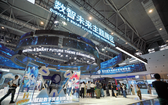 今天,杭州正式进入“数贸时间”。第四届全球数字贸易博览会将于9月25日—29日在杭州大会展中心举行。本届数贸会规模超前、亮点纷呈,15.5万平方米的展出空间内,打造1个主题展馆和7个特色展馆,涵盖智能机器人、时空智能、人工智能、数字医疗等前沿领域,集中呈现生成式AI、多模态感官交互等尖端技术和产品。图为昨天人们提前在杭州大会展中心探馆。