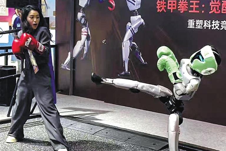 “直拳、勾拳、顶膝、侧踢……这些格斗,还有翻滚、街舞等复杂动作,都是通过AI驱动完成的。”宇树科技工作人员介绍,“就算被击倒,机器人也可以快速爬起来,其运动稳定性已经得到了显著提升。”