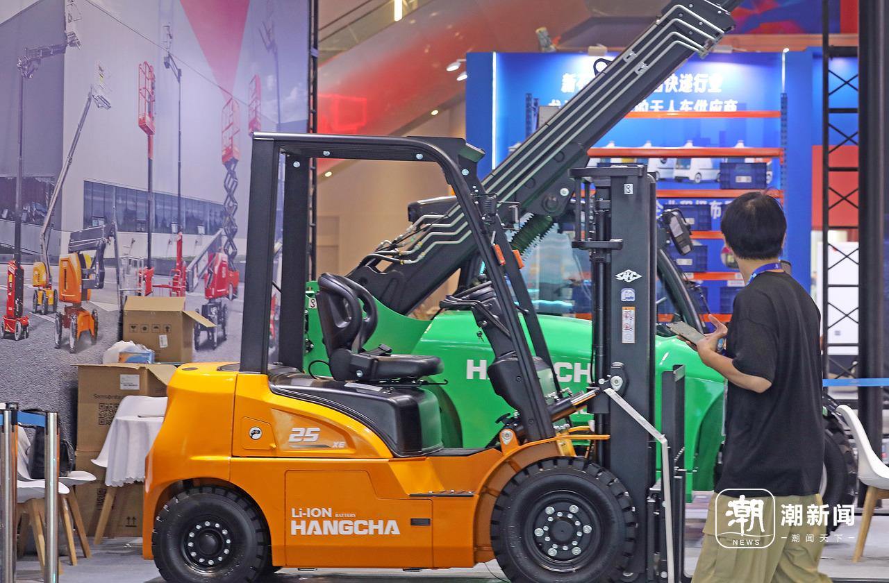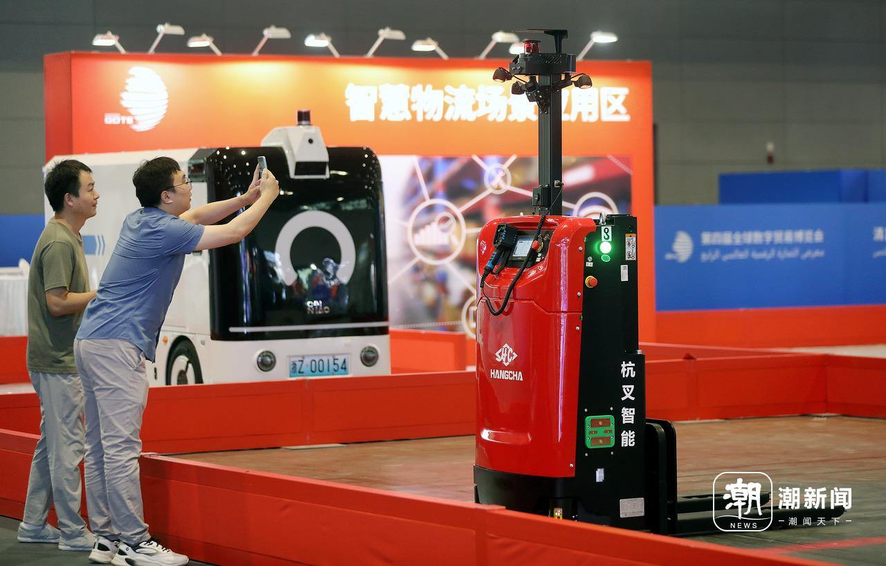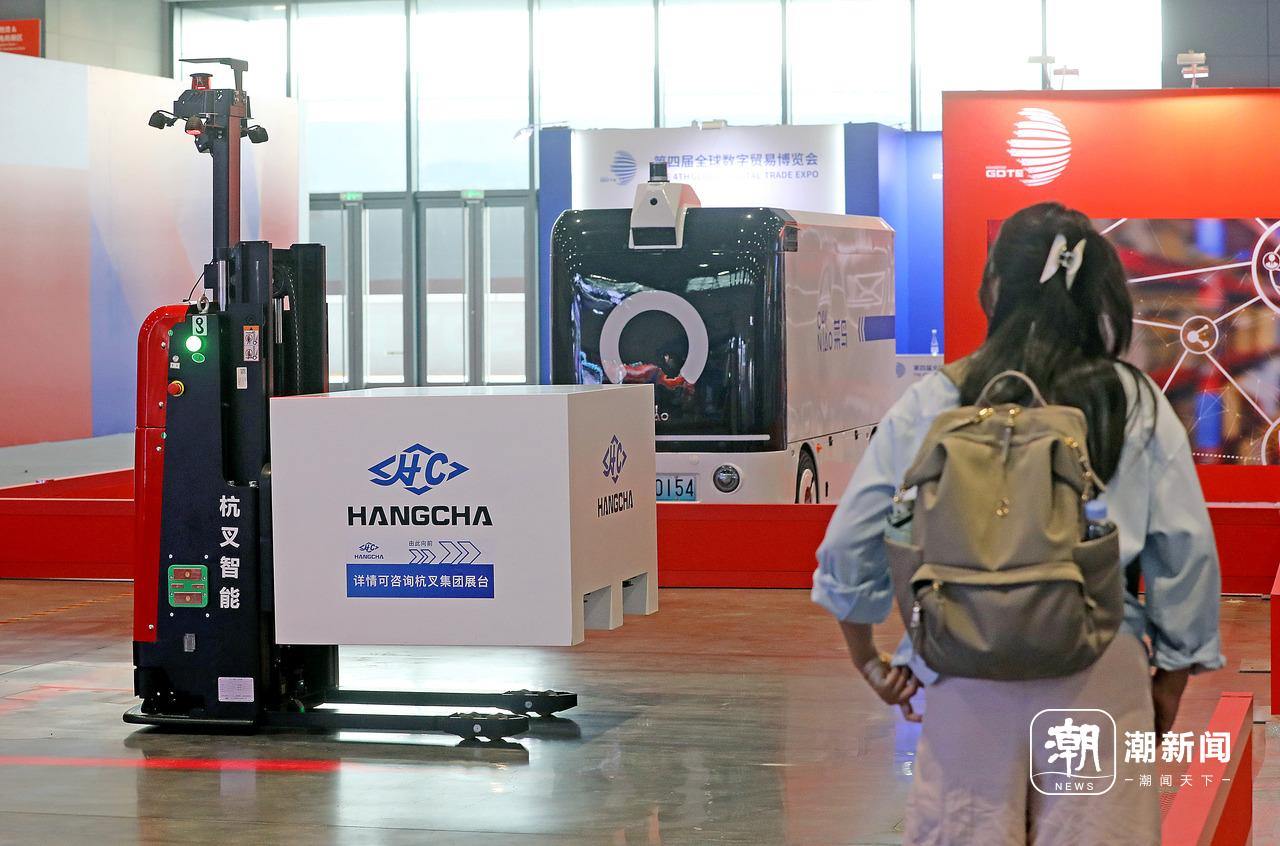 杭州生产的智能叉车在场地里自动穿梭,直观感受数字技术与物流产业深度融合。