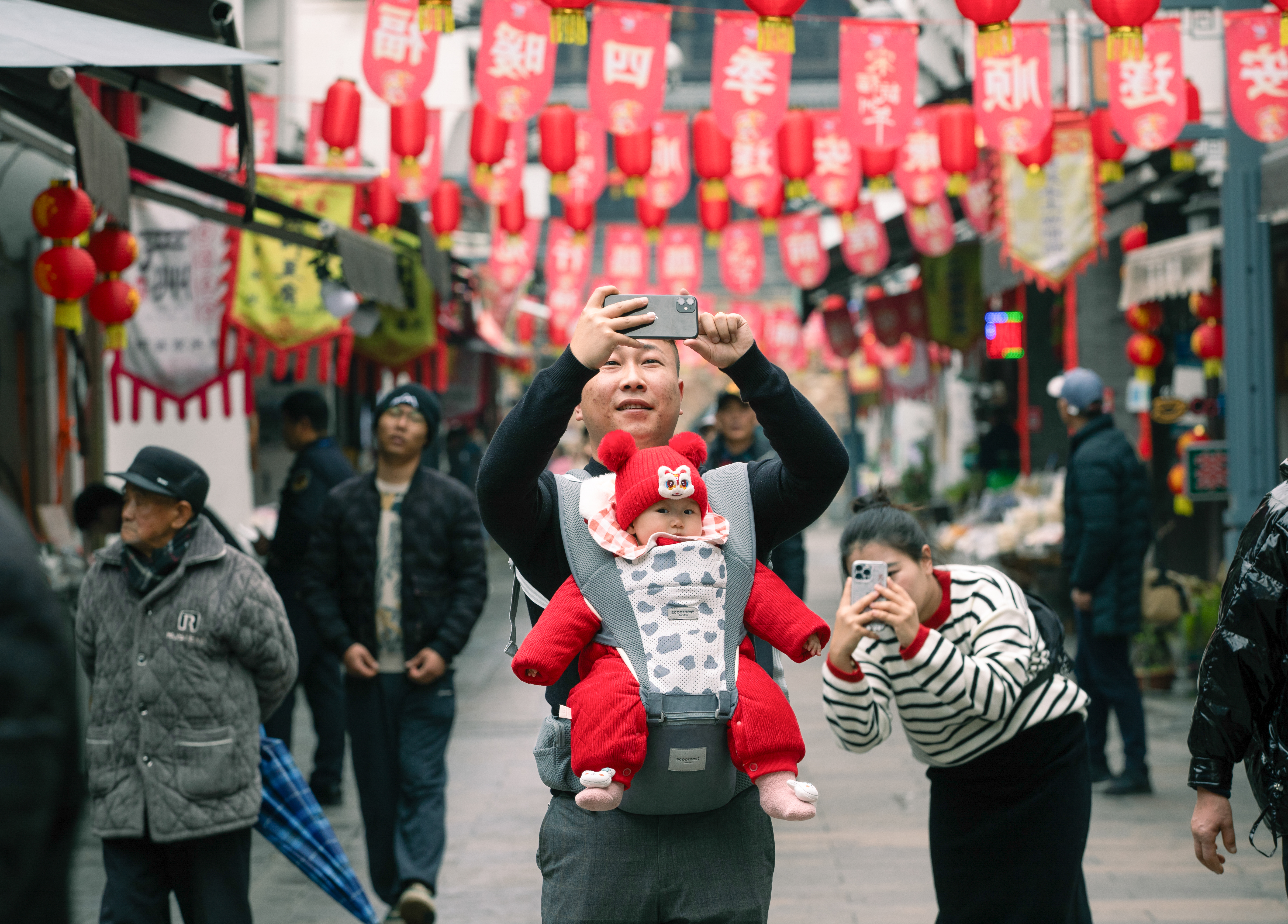 邹鸿《红灯笼下的亲子趣“拍”》