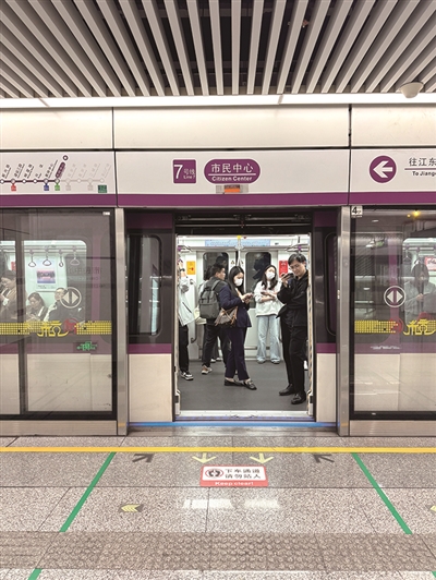 地铁5号线工作日高峰行车间隔由3分钟压缩至2分50秒,每小时单向运能提升14%,达到3.3万人次。