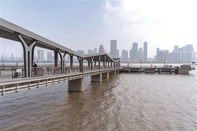 昨天下午,记者从城市阳台进入江堤步道,看到渡轮码头就在靠近香隐钱塘的旁边。