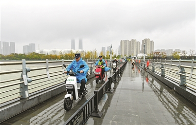 过了安检闸上了引桥,一旁工作人员就建议全程推车了。记者注意到,在引桥坡度最大的一段,靠江一侧整齐地固定着一排橘红色防撞桶。“有些人可能会不听劝骑车冲下来,所以我们特意做了这个防护,也测试过安全性。”工作人员解释道。