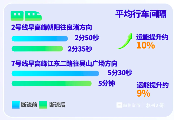 在三桥封闭施工前,杭州地铁已针对2、7号线进行提前增能。