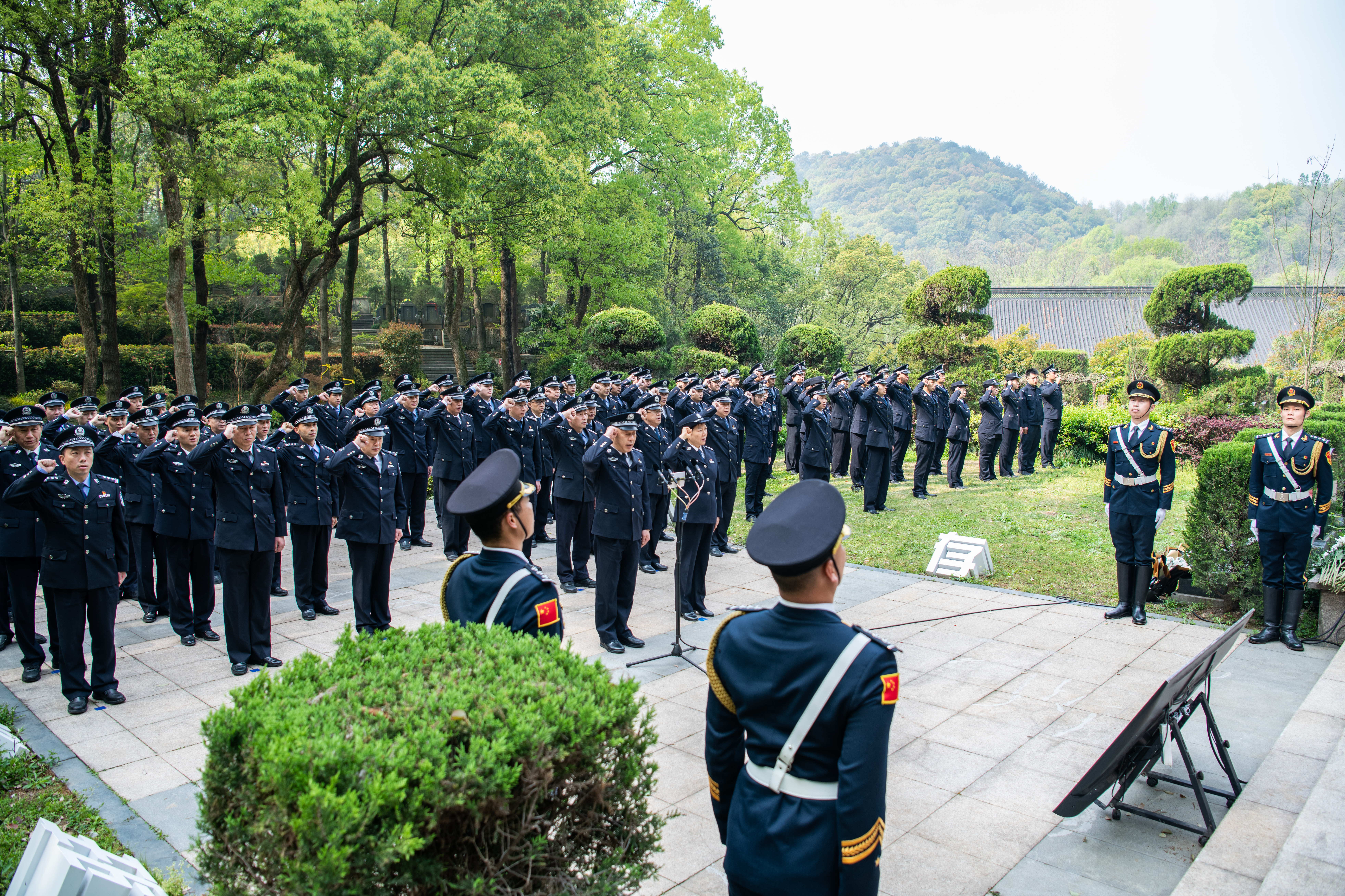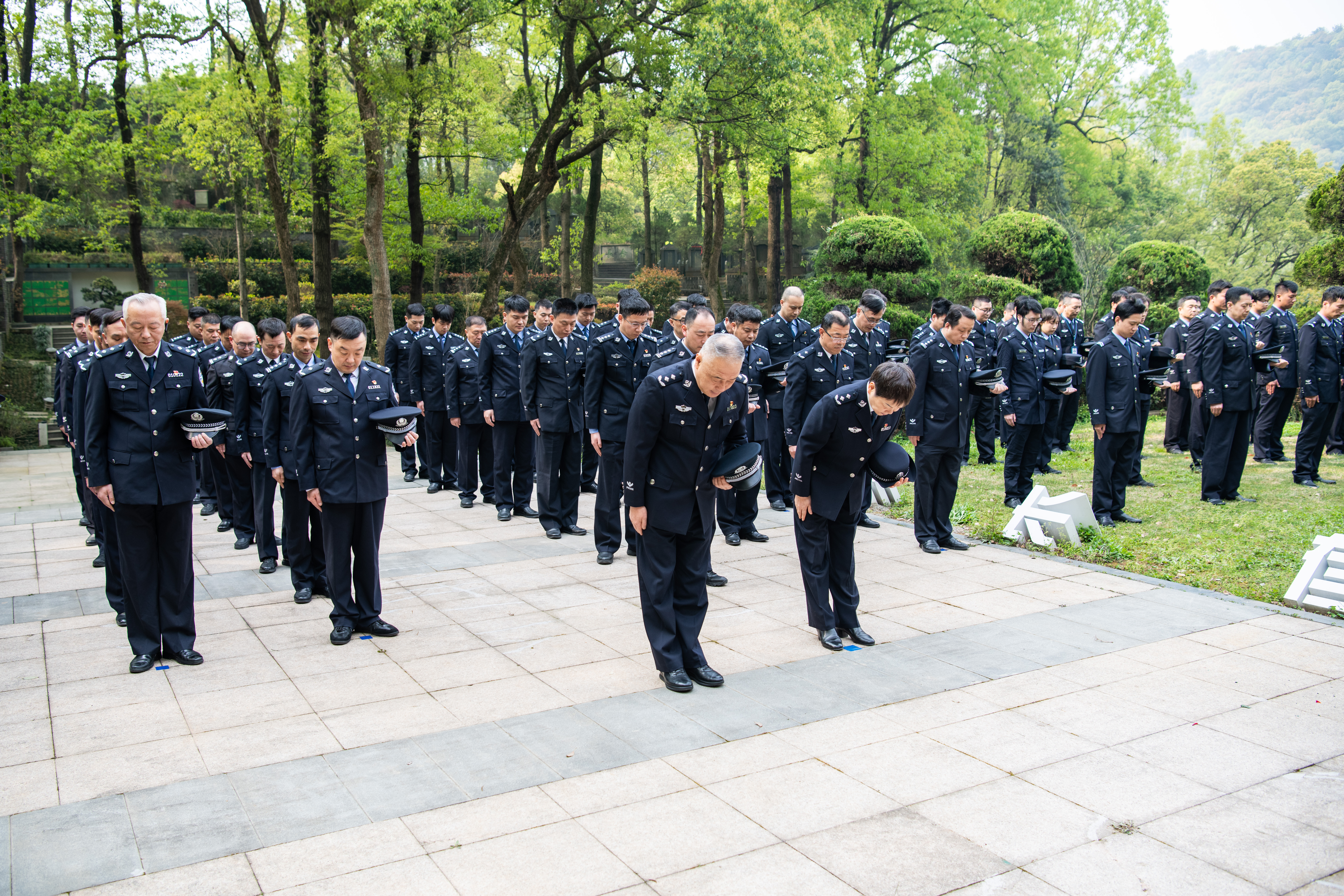 4月3日上午,杭州市公安局机关民警代表齐聚南山陵园警魂苑,参加祭奠公安英烈活动,深切缅怀为守护杭城平安英勇牺牲的公安英烈。