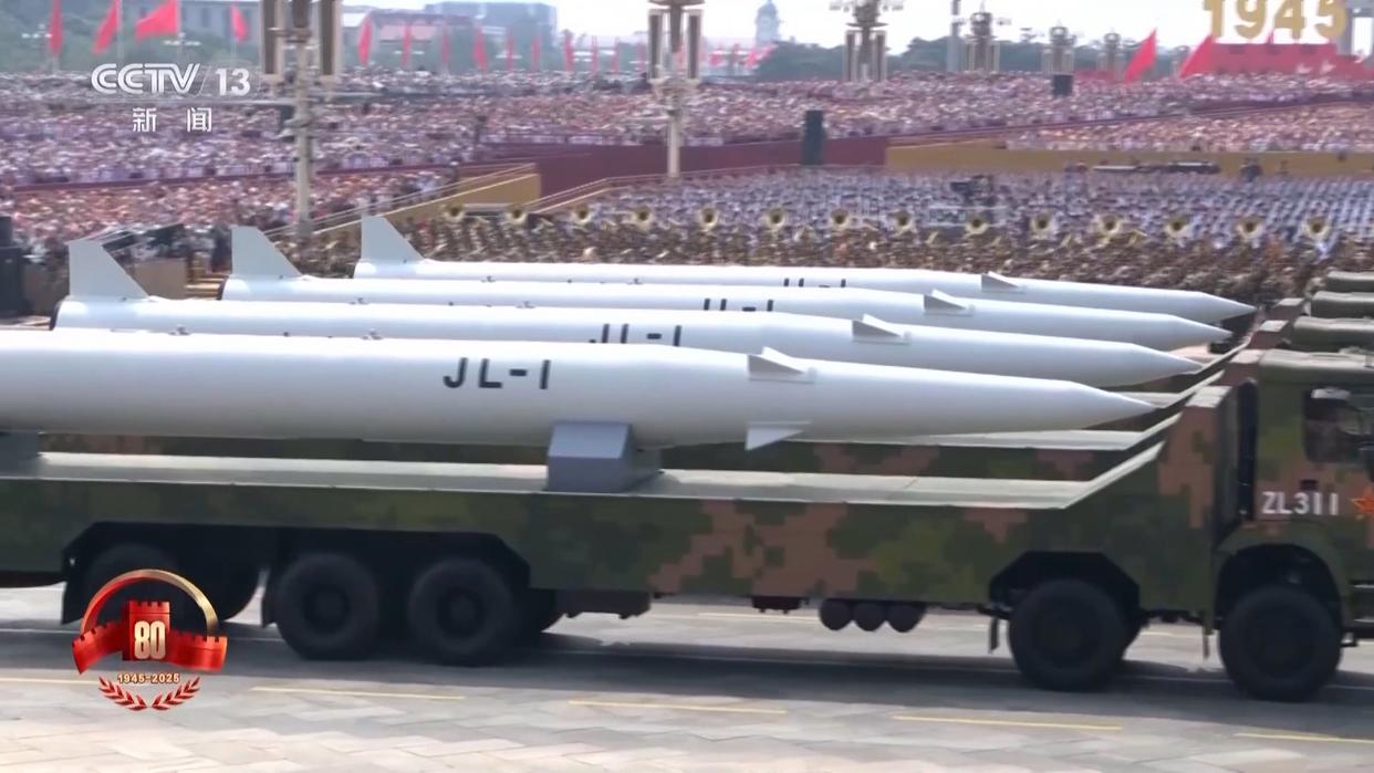 总台央视记者 王晓丹:这就是参阅的火箭军长剑-1000巡航导弹,具有打击精度高的特点。区别于东风系列的弹道导弹,长剑系列作为巡航导弹,由于全程是在大气层内飞行,导弹飞行速度的提升是一个难点。在长剑家族中,从长剑-10到长剑-100,再到长剑-1000,从亚声速到超声速,再到高超声速,长剑系列导弹的成长轨迹也体现了我军巡航导弹的迭代更新。