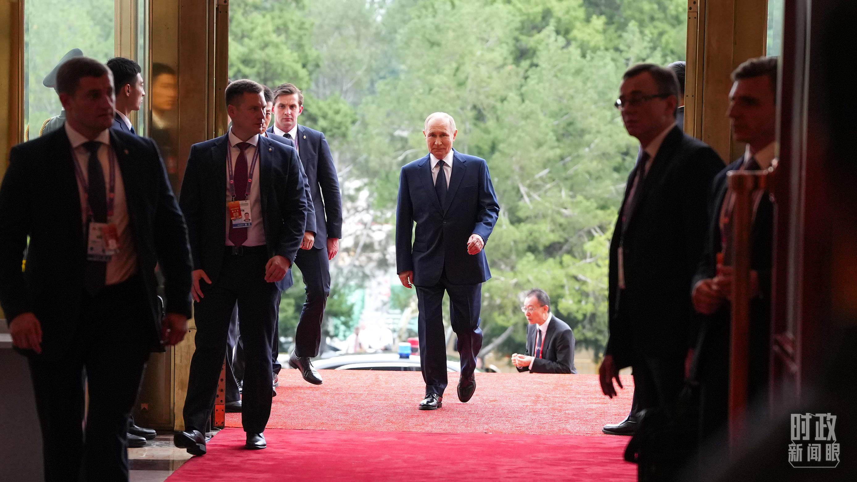 △普京总统步入人民大会堂。(总台记者李晋拍摄)