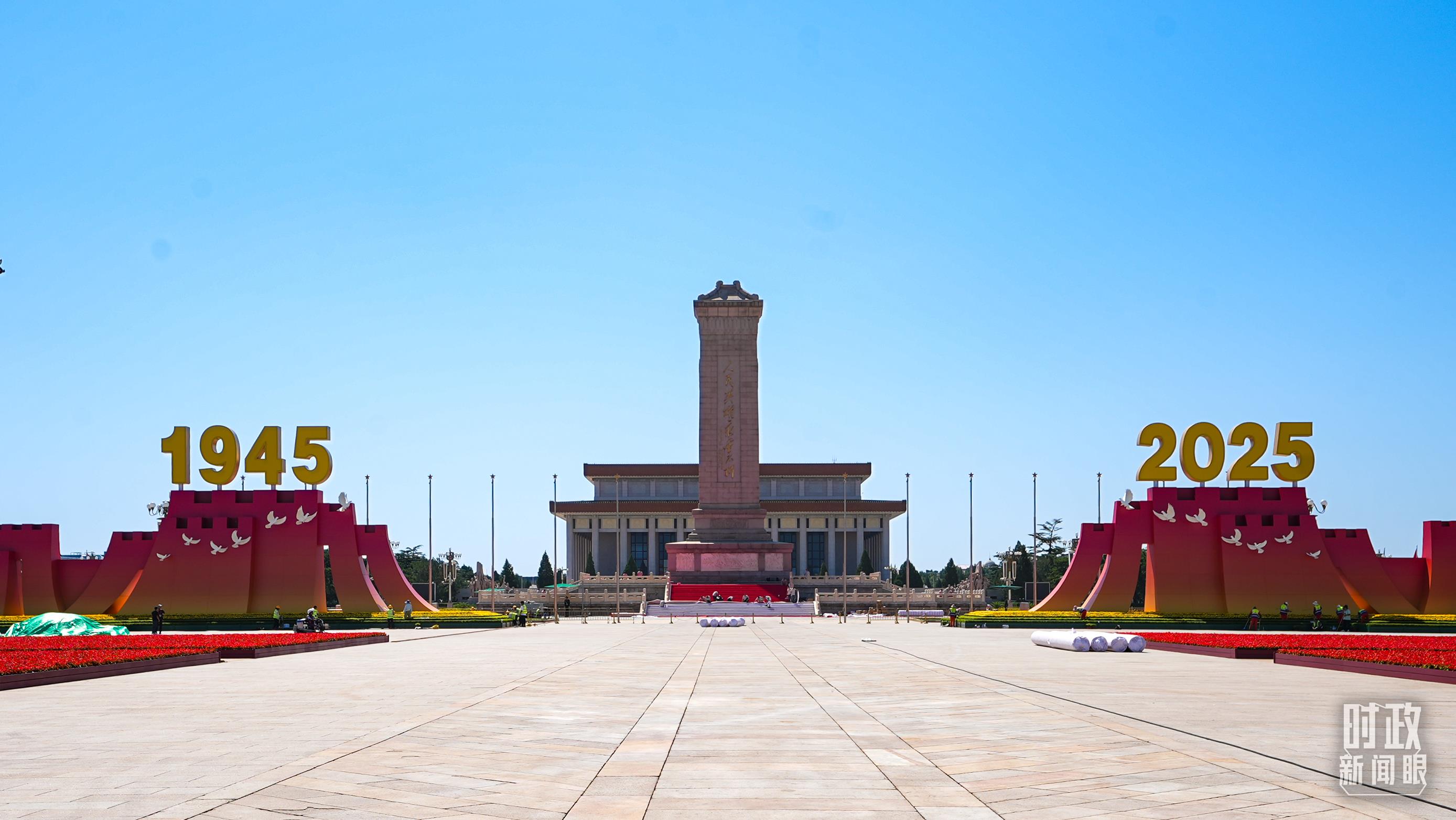 △即将迎来纪念中国人民抗日战争暨世界反法西斯战争胜利80周年大会的天安门广场。(总台央视记者范鑫拍摄)