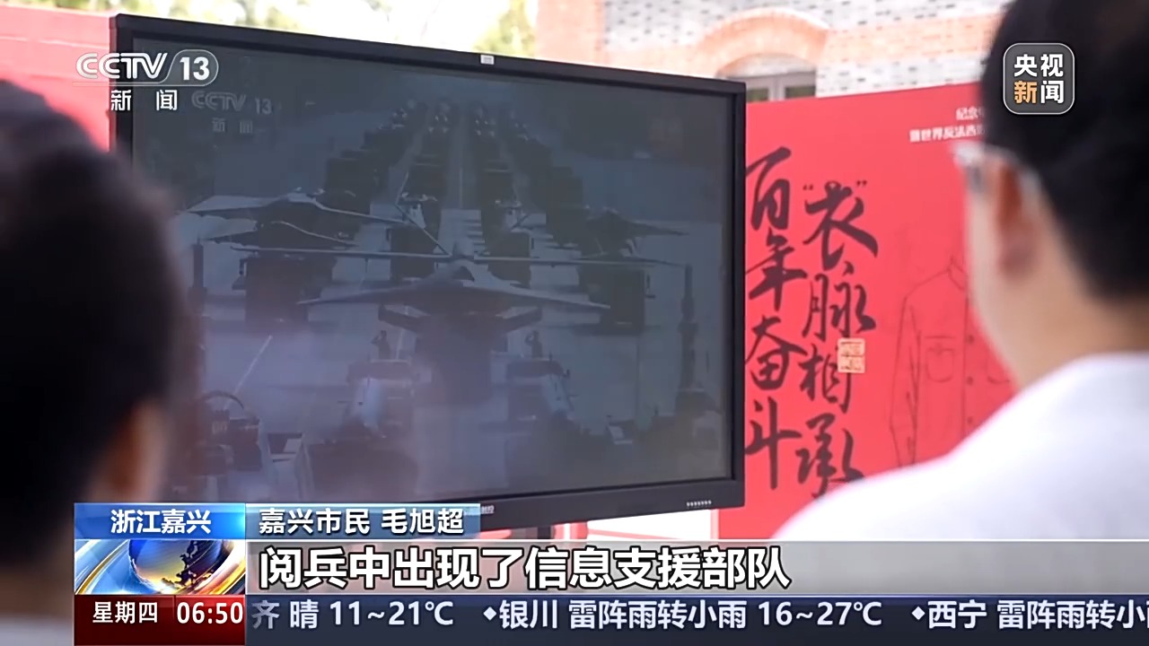 嘉兴市民 毛旭超:阅兵中出现了信息支援部队、网络空间部队这些新质作战力量,让我眼前一亮。这些装备的展示充分说明了新时代我们强军事业的伟大成就。