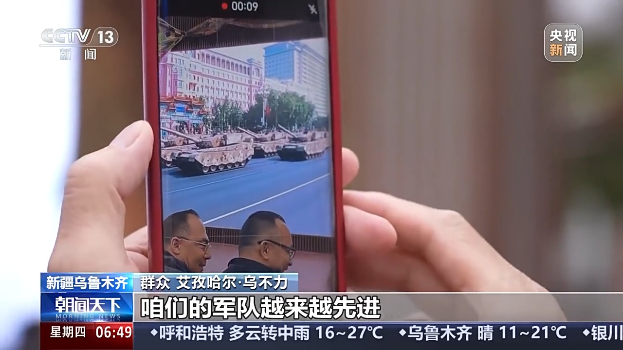群众 艾孜哈尔·乌不力:我感到非常自豪,咱们的人民子弟兵非常帅气。国家越来越强大,咱们的军队越来越先进,咱们的人民生活越来越幸福。
