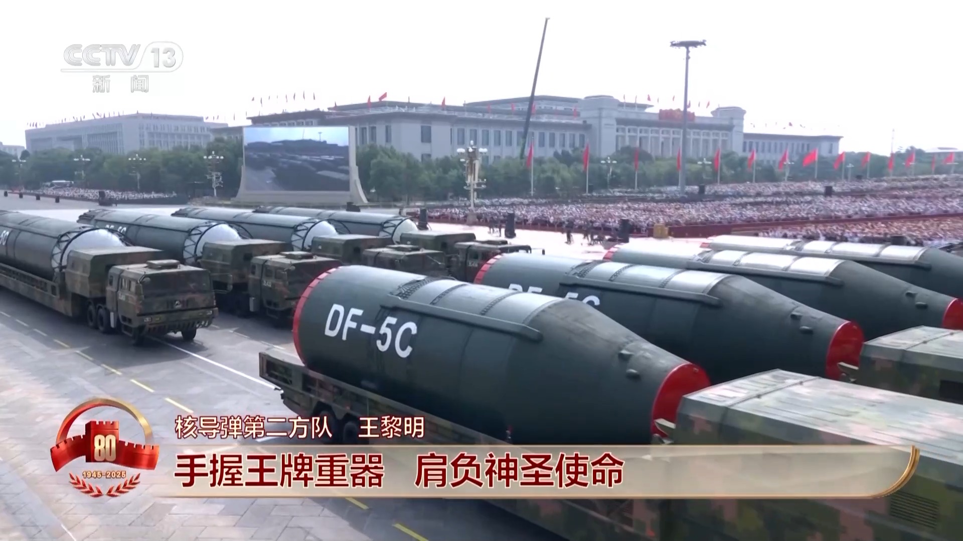 核导弹第二方队 王黎明:东风-5C液体洲际战略核导弹亮相,打击范围覆盖全球,是此次战略打击群最后亮相的战略重拳。手握王牌重器,肩负神圣使命,我们全时戒备、有效威慑;听令出鞘、砥定乾坤!