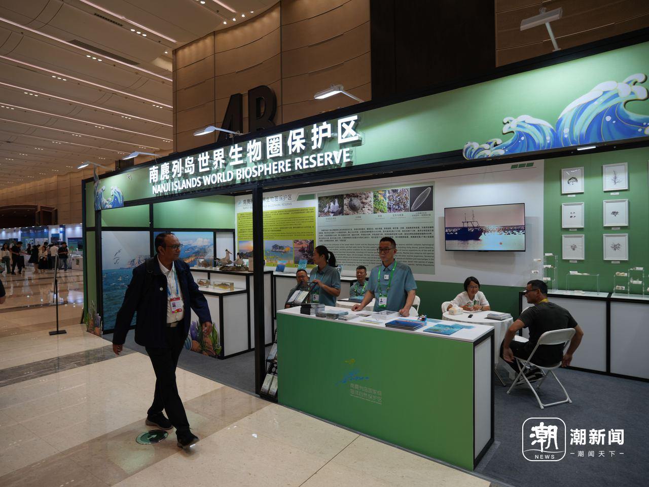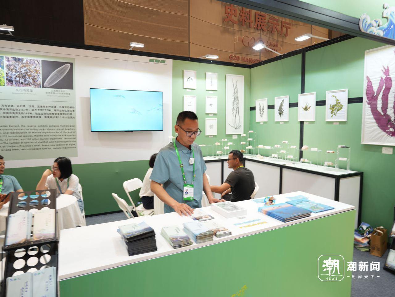 来自安哥拉的代表卡特琳娜(Catarina)在展区前停留了许久,她用手机镜头从贝藻标本扫到手绘绘本,还拿起宣传册浏览起来,尝试了解南麂生态保护的脉络。