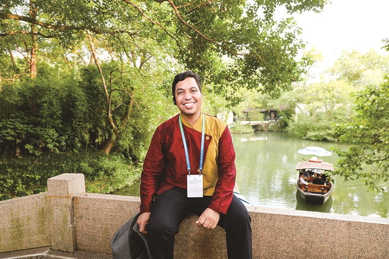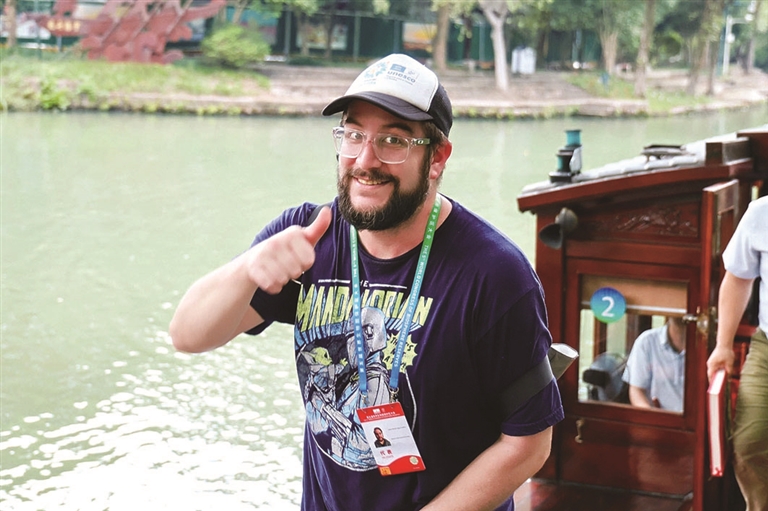 昨天下午,第五届世界生物圈保护区大会的国际代表组团参观中国湿地博物馆、乘船游览西溪湿地、漫步热闹的河渚街、品尝刚摘下的柿子……