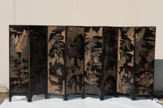 晚清回流款彩雕漆朱漆黑漆双面屏风