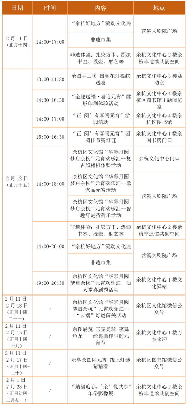 蛟龙去,灵蛇来,余杭街道精心策划“巳巳如意 福泽禹航”2025年余杭街道系列文化活动,活动包含戏曲表演、新春集市、文艺赋美等内容,为大家带来丰富的元宵活动。