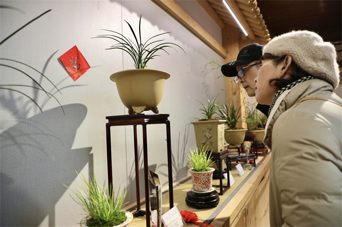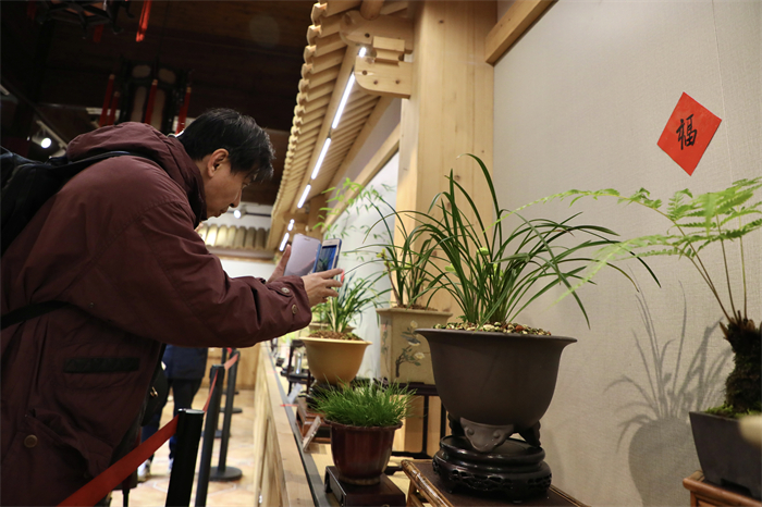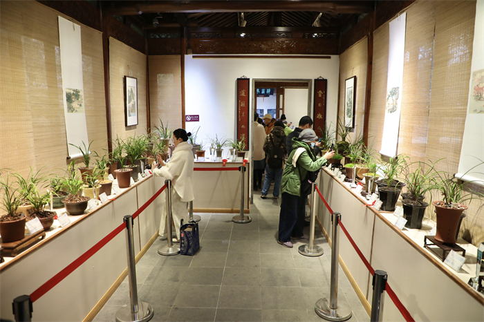 郭庄园内百余盆精品春兰齐亮相,或淡雅素净,或绚丽多彩,形态各异。有的花瓣舒展,似在向观众展示曼妙身姿;有的含苞待放,宛如羞涩少女,别具韵味。本次展览共展出春兰200余种,400余盆,其中还有来自上海、苏州的参展作品。