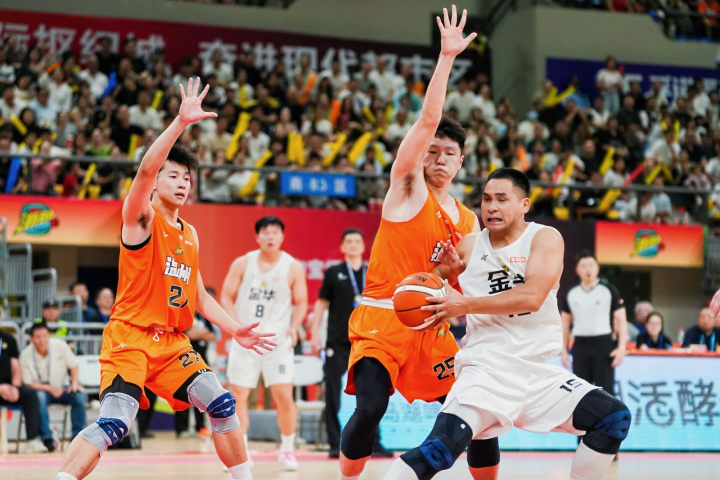 此时,金华队老将唐俊潇站出来,命中3分,为球队止住颓势。