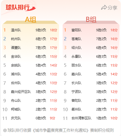 温州队下一场比赛将在11月1日19:30主场对阵庆元队,湖州队下一场比赛将在11月1日19:30客场对阵台州队。