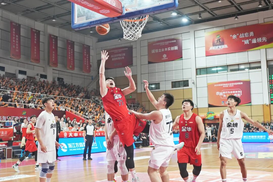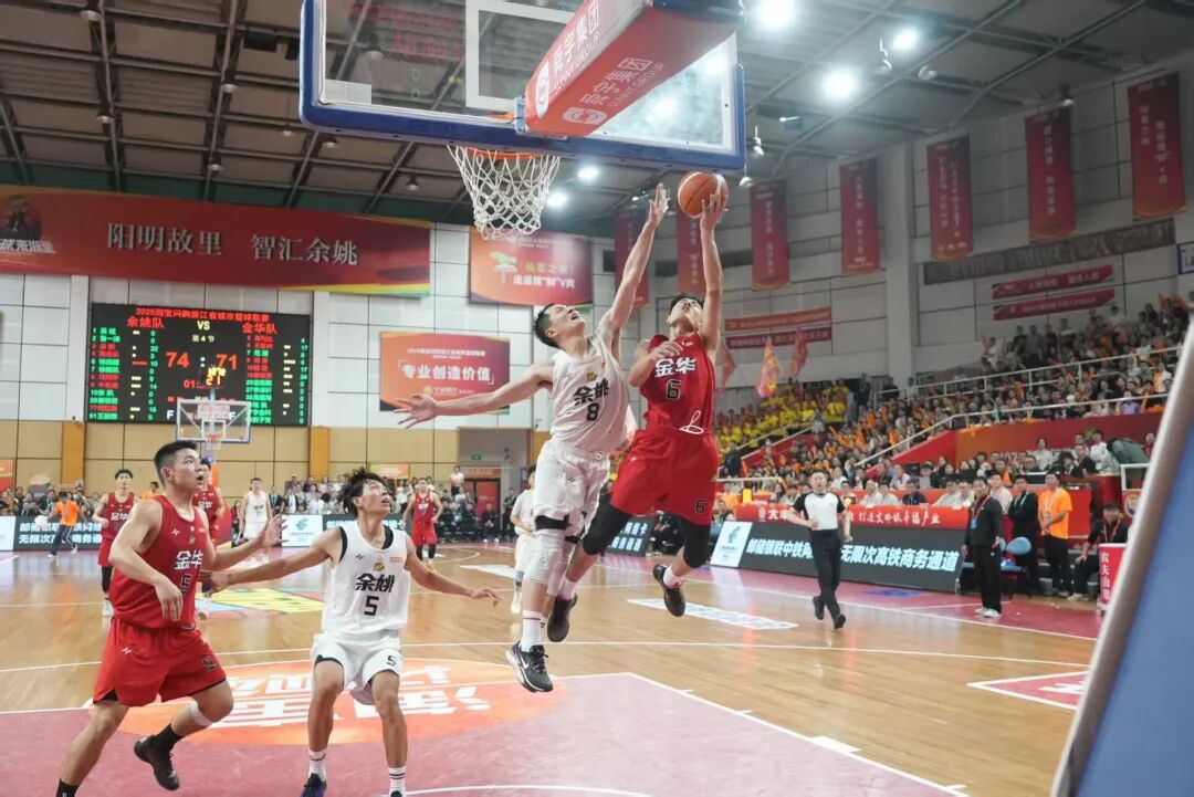 末节,双方迎来最终对决。王哲烨急停跳投率先帮助金华队拿下2分。余姚队攻防两端展现不俗实力,连得4分后又通过强硬护筐给金华队一击,将分差追至2分。王哲烨、唐俊潇、黄利达纷纷发力,在篮下制造杀伤。随着李泽轩一记后仰跳投的2分,金华队再次领先4分。但局势变化很快,余姚队接连打出“2+1”和弧顶3分,比分反超金华队2分。之后,金华队与余姚队交替领先。最后一攻,金华队上篮造成对方犯规,可惜罚球未进。全场哨响,金华队以75:77惜败余姚队。小组赛双方战至1:1平。