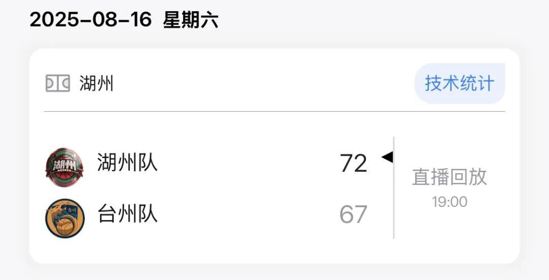 本场比赛后,湖州队在城市争霸赛的战绩为5胜7负积17分。此前战绩如下: