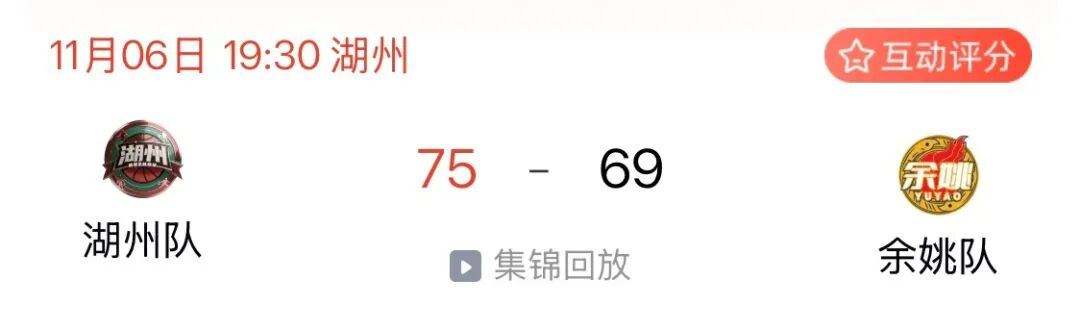 11月6日晚,浙BA城市争霸赛第十三轮比赛继续进行。今晚进行对决的是湖州VS余姚。最终,湖州75:69胜余姚!