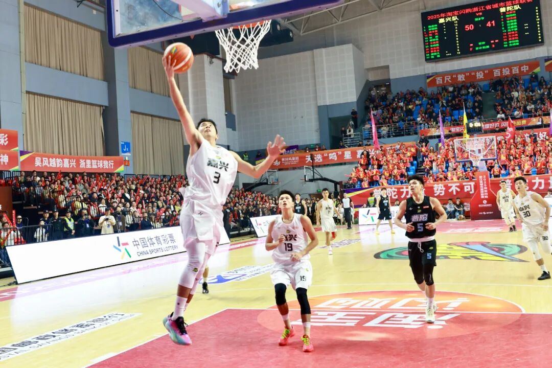 比赛进入第三节最后一秒,全场瞩目之下,陈扬接过传球,毫不犹豫地外线出手——三分命中!这也是他本场比赛投入的第5记三分球,彻底点燃全场。至此,嘉兴队已将领先优势扩大到25分!