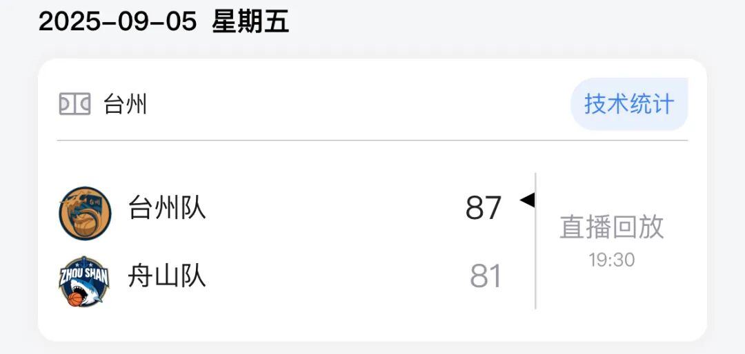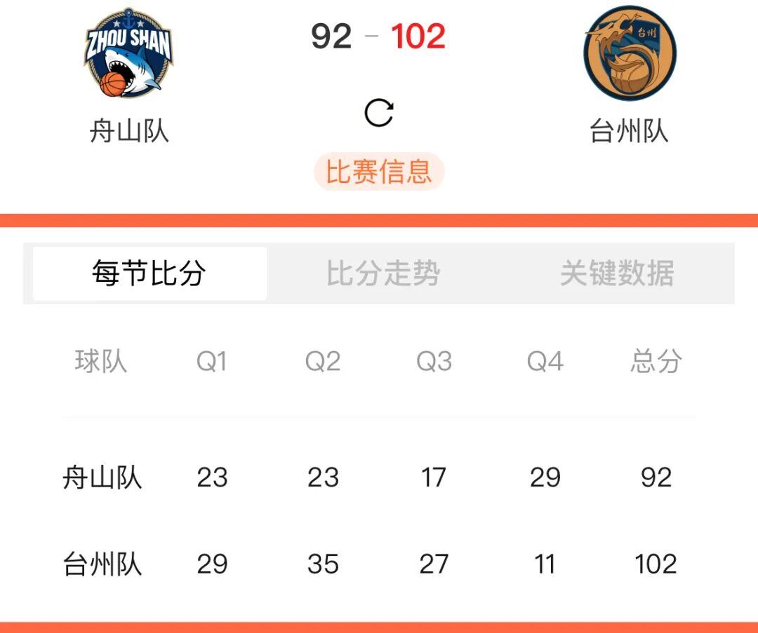 本场比赛后,舟山队的战绩为4胜9负积17分,台州队的战绩为9胜5负积23分。