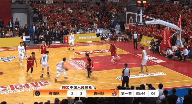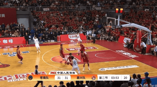 第二节嘉兴队依旧全场紧逼,进攻得手拉近分差,暂停后苍南队迅速找回节奏稳住比分,两支队伍针锋相对,嘉兴队凭借内线身高优势加强防守,苍南队三分中投手感依旧良好,一时间双方得分不分上下。半场结束,嘉兴41:40领先一分。
