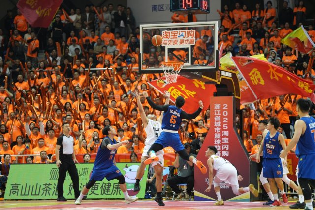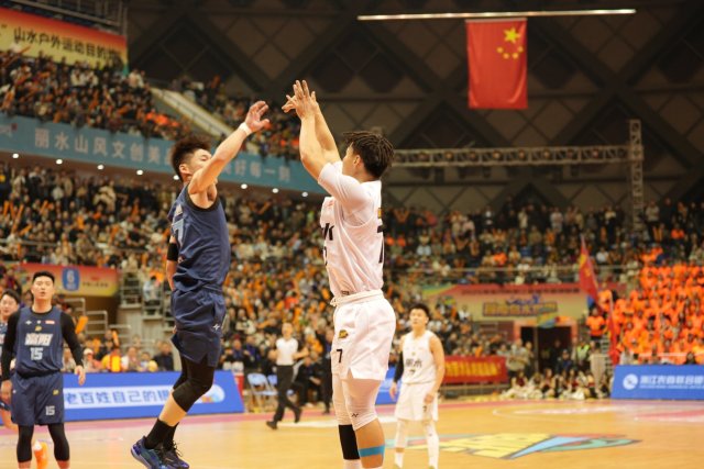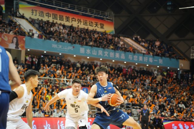 易边再战,丽水队外线命中两记三分球,将比分追平,给富阳队带来不小压力。面对外线紧逼,富阳队充分发挥内线优势,以58比54结束第三节。