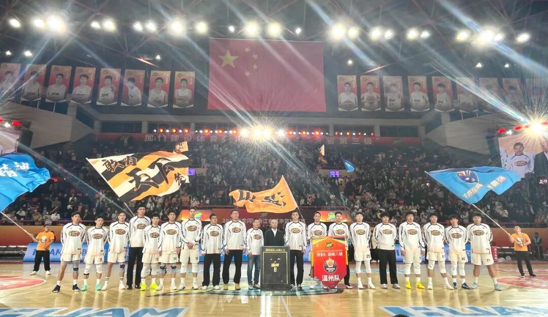 比赛结束后,现场进行了“浙BA·巅峰八强”晋级仪式。赛事组委会代表为温州队授旗,赠送“浙BA·巅峰八强”专属荣耀战袍。温州队长代表全队致谢发言。