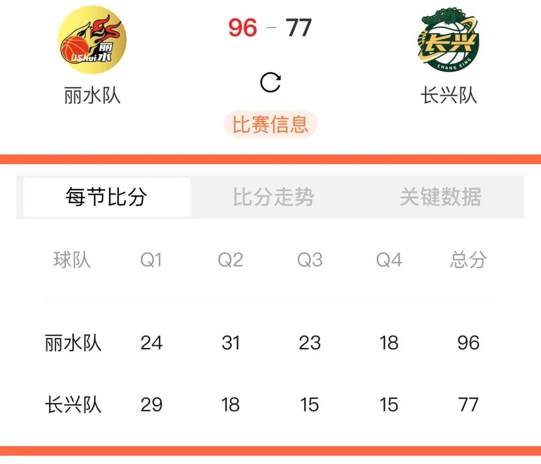 丽水VS长兴 96:77 丽水胜!