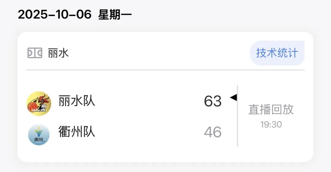 本场比赛后,衢州队的战绩为6胜13负积25分,丽水队的战绩为14胜4负积32分。