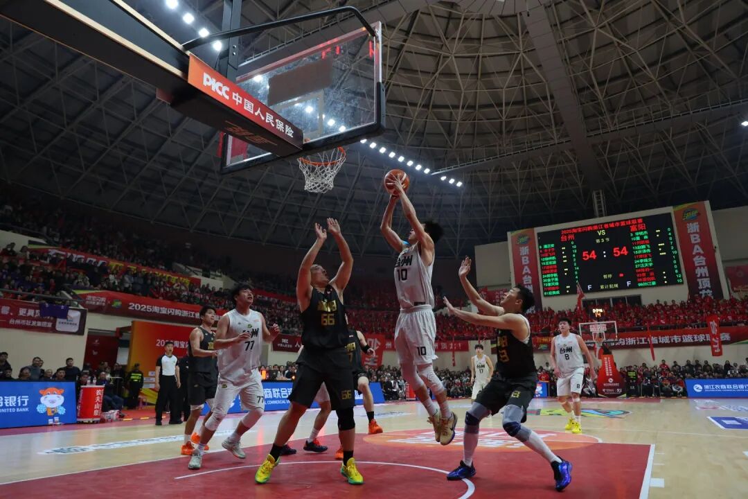 下半场是决定生死的拉锯战。台州队外线手感暂时冷却,富阳队抓住机会连得6分。随后双方攻防节奏陷入胶着,失误增多,比赛进入白热化。关键时刻,台州队邵政瑄反击上篮得手,梁飞祥命中止血三分,三节战罢台州队以60:57夺回领先优势。