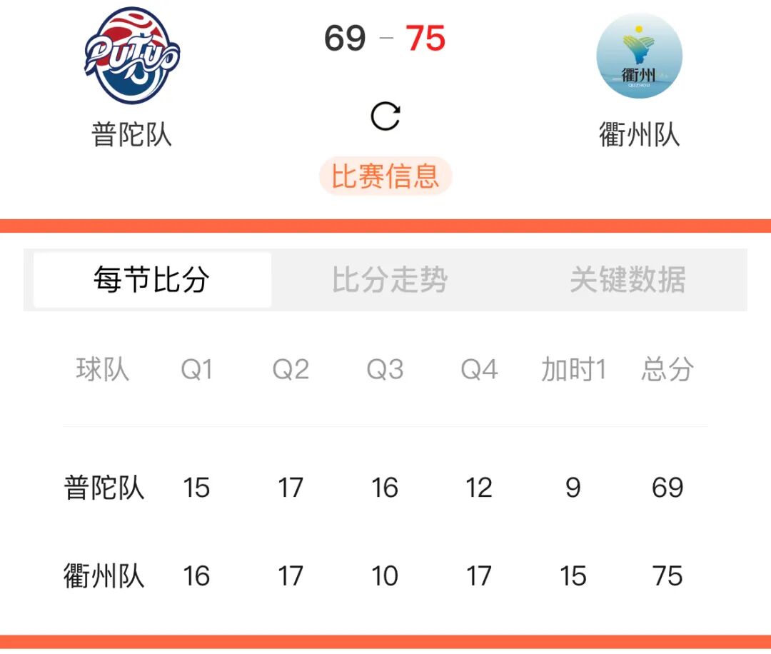 普陀69:75衢州(加时)