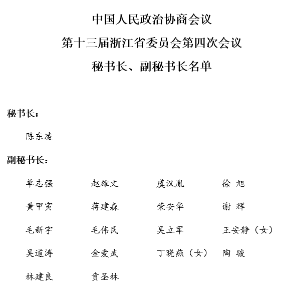 中国人民政治协商会议第十三届浙江省委员会第四次会议秘书长、副秘书长名单