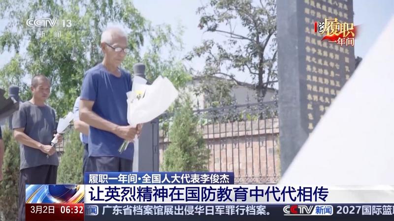全国人大代表 李俊杰:英雄烈士、部队官兵、青少年,铺展开一个民族精神的长卷、和平的基石和复兴的宏图。守卫“英烈红”、传扬“国防绿”、赓续“英雄气”,就是要把革命先烈流血牺牲打下的红色江山守护好、建设好,把红色基因传承下去,确保红色江山永不变色。