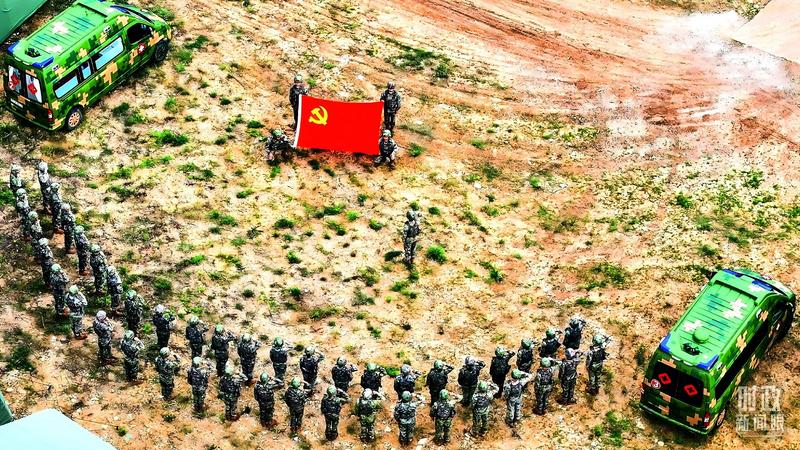△2025年7月1日,“刘老庄连”组织党员重温入党誓词。(解放军画报谢沅鑫拍摄)