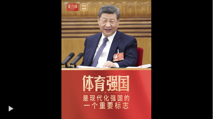 人民日报客户端讯 全国两会“下团组”,习近平总书记深刻指出:“体育强国是现代化强国的一个重要标志。”“十五五”规划纲要草案提出了体育强国等16个“强国”目标。阔步新征程,要继续弘扬中华体育精神,苦干实干,砥砺奋进!