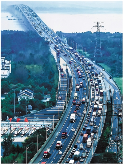 G2504杭州绕城高速下沙大桥段车流。杭州公安交管高速交警供图