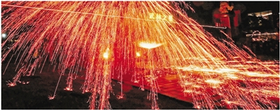 千年非遗绝技打铁花,让市民游客亲眼见证“火树银花不夜天”的盛景。