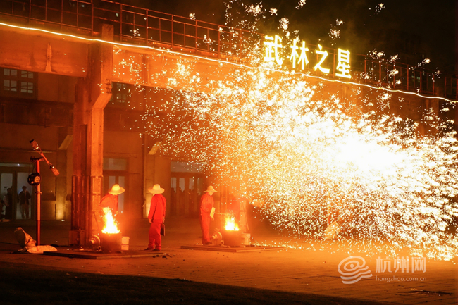 非遗打铁花铁水迸落如星河,老厂房里潮玩机器人巡游、梧桐市集飘香,传统与新潮交融。