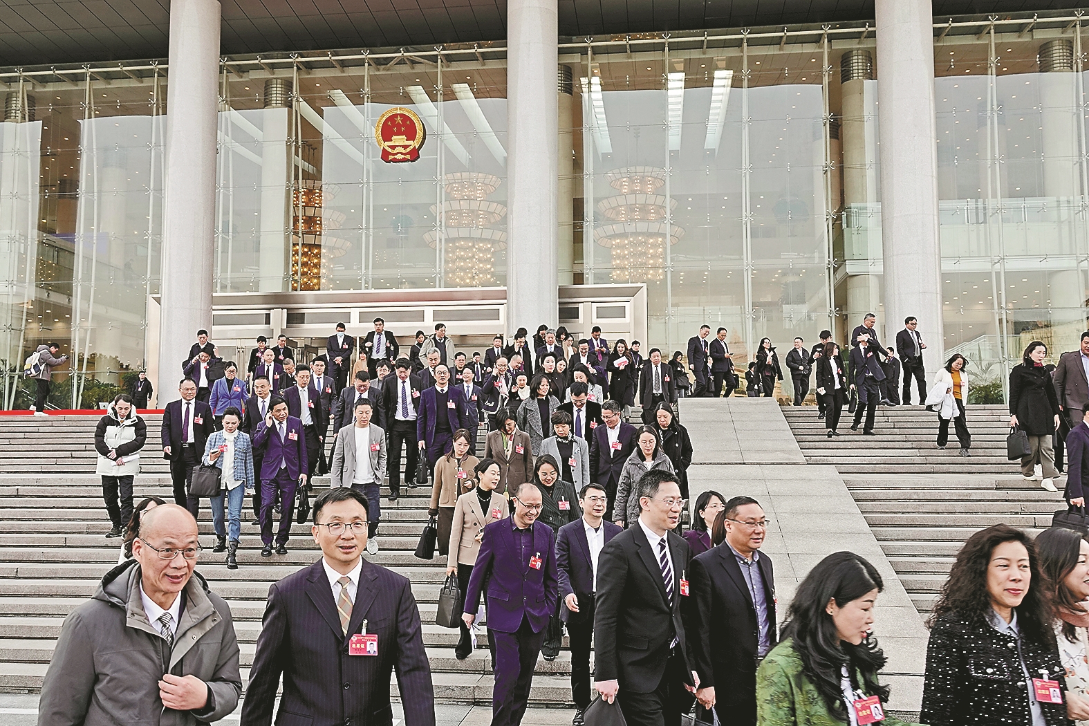 1月23日下午,杭州市政协十二届五次会议圆满完成各项议程,在省人民大会堂胜利闭幕。图为大会结束后,委员们走出会场。
