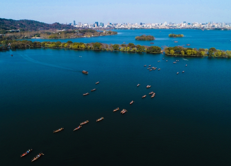 杭州是一座水城,了解“水”,才能了解这座千年古城。如果你登临吴山之顶,山水相依的杭州城开阔起来,在这幅自然画卷上,西湖如明珠璀璨、钱塘江如玉带蜿蜒。