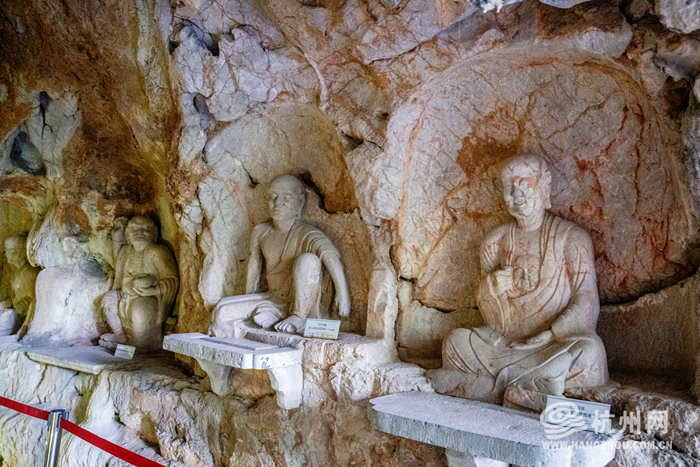 雕罗汉造像现存11尊,而洞内一共是十六罗汉还是十八罗汉,过去争论了百年之久,直到2021年才“破案”——浙江省博物馆专家在洞内新发现了多处的题记,经过反复论证,明确烟霞洞原有十八罗汉,雕凿时间为735年。而在此之前,古人信奉的罗汉都是来自异域经书里记载的十六罗汉,这也证实了十八罗汉是从十六罗汉演变而来,起源就在中国,而且是烟霞洞。