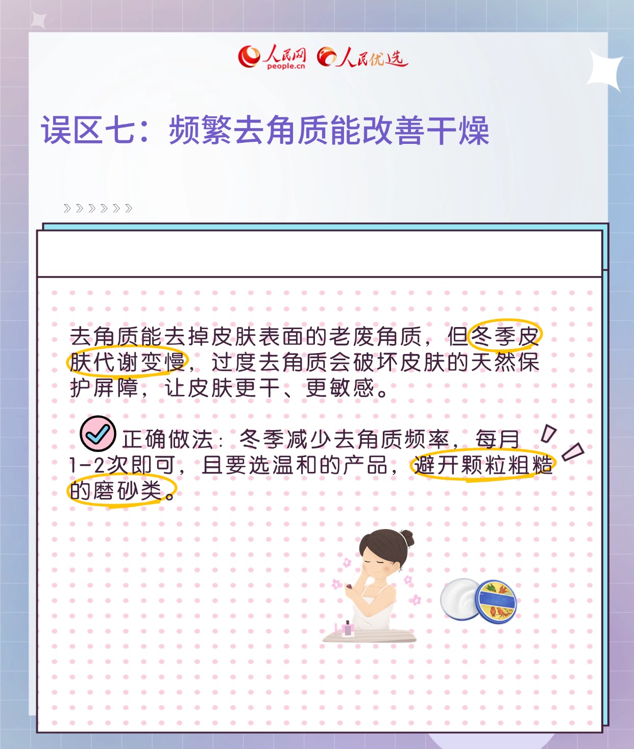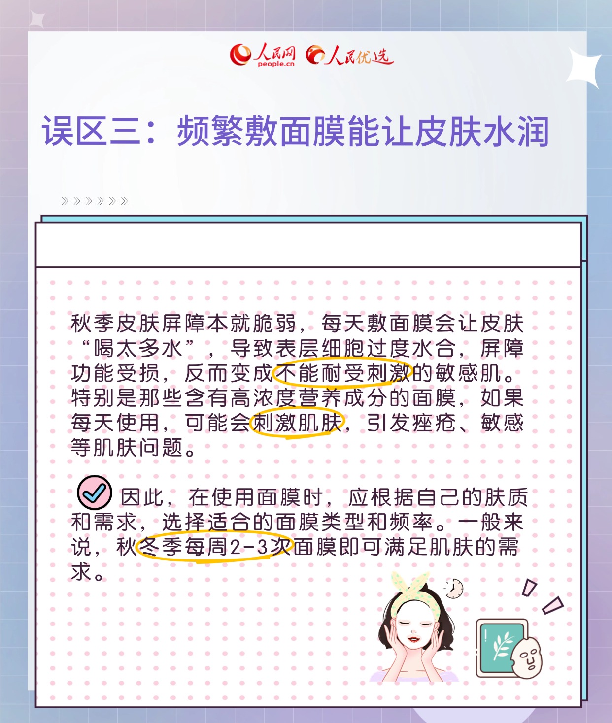 冬季皮肤干燥、紧绷甚至脱屑皲裂,其实是气温下降、空气湿度变低导致皮肤水分快速蒸发的正常现象。很多人急于补水保湿,却因方法不当效果不佳。本期《人民优选来了》,为你梳理下面8个秋冬护肤常见误区,快看看你有没有中招!