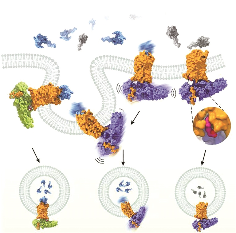 GPR1与阻遏蛋白的复合物结构示意图